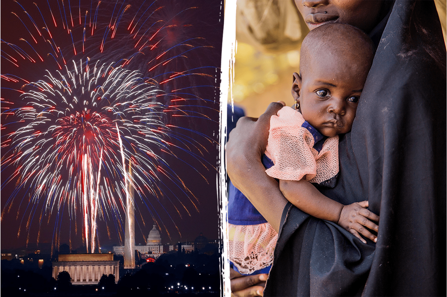4. In pre-pandemic times, about 700,000 people traveled to Washington D.C. to watch the fireworks display and celebrate the Fourth of July in our nation’s capital. For every one person sitting on the National Mall watching the fireworks, there is one person in the world who will go to bed that night not knowing where their next meal is coming from.