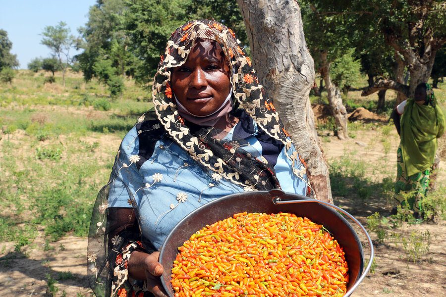 Last year, the 47-member Klakil Farmers cooperative – comprised mostly of women and supported by the U.N. World Food Programme — harvested over 220 pounds of peppers from its 17-acre plot. Its members included longtime Mayo-Moskota residents but also internally displaced persons like Mayramou, who fled the Boko Haram insurgency that has gripped this region and parts of neighboring Nigeria too.