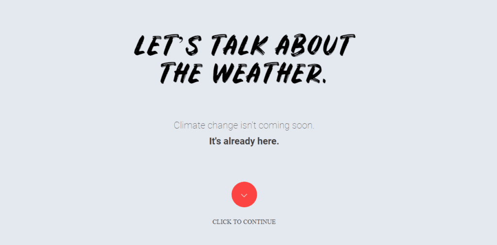 It started with a simple invitation: Let’s talk about the weather. And nearly 3,000 readers responded by scrolling, clicking and dragging their way through this game-board-style infographic. Seeing the link between extreme weather and global hunger in such a succinct, visually impressive way is more than worth the 5-minute read time…read more