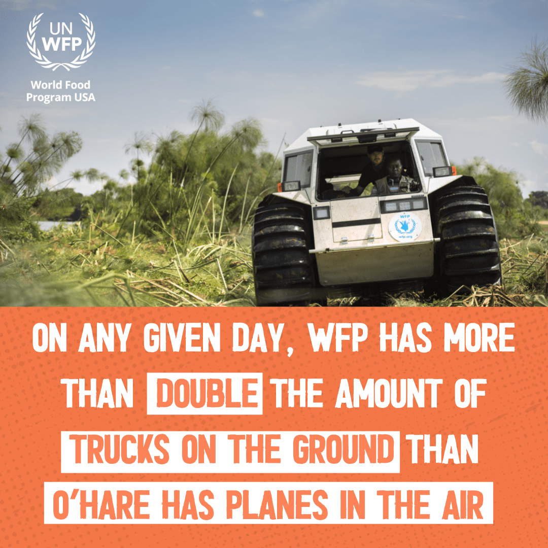 6) On any given day, we have more trucks on the ground than Chicago O’Hare has planes in the air. Our food assistance fleet includes 5,600 trucks, 100 aircraft and 30 ships.