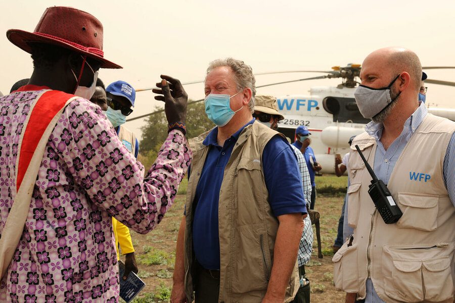 South Sudan: U.N. World Food Programme Executive Director David Beasley, center, on a visit in February to Vertet in Jonglei Sate, where floods and conflict displaced 1 million people last year.