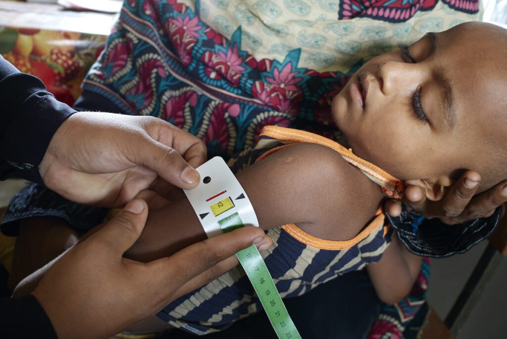 Two-year-old Ashraful has his upper arm measured at a U.N. World Food Programme clinic in Bangladesh: It’s a measure that helps determine and identify malnutrition in young ones. At the appointment, his mother collects food supplements like Super Cereal and Plumpy Nut to bring him back to health.