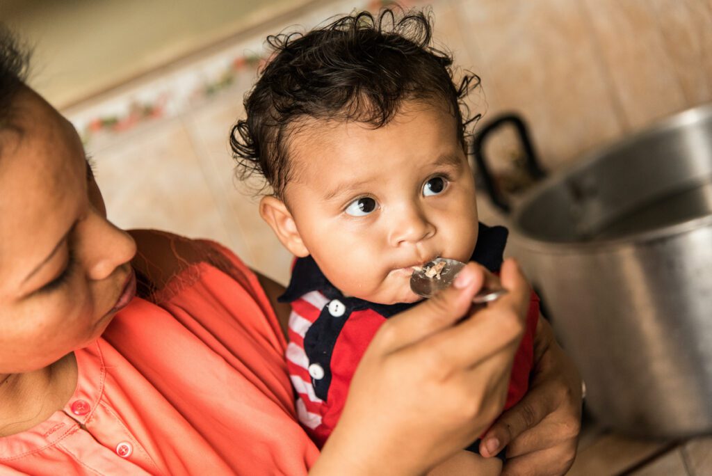 Anayury – a refugee from Colombia – uses U.N. World Food Programme vouchers to buy food and make a nutritious meal for her and her baby Yuilmar.