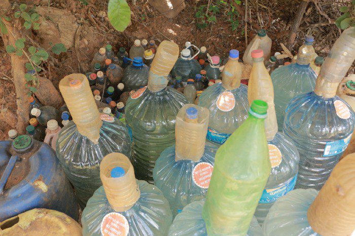 “I collect jerrycans that people have discarded because perhaps they have a hole in them or just don’t have any use for them,” says Matei. “I mend the ones with holes and whenever it rains in the hills, I collect run-off water and store it under a shade for future use.”