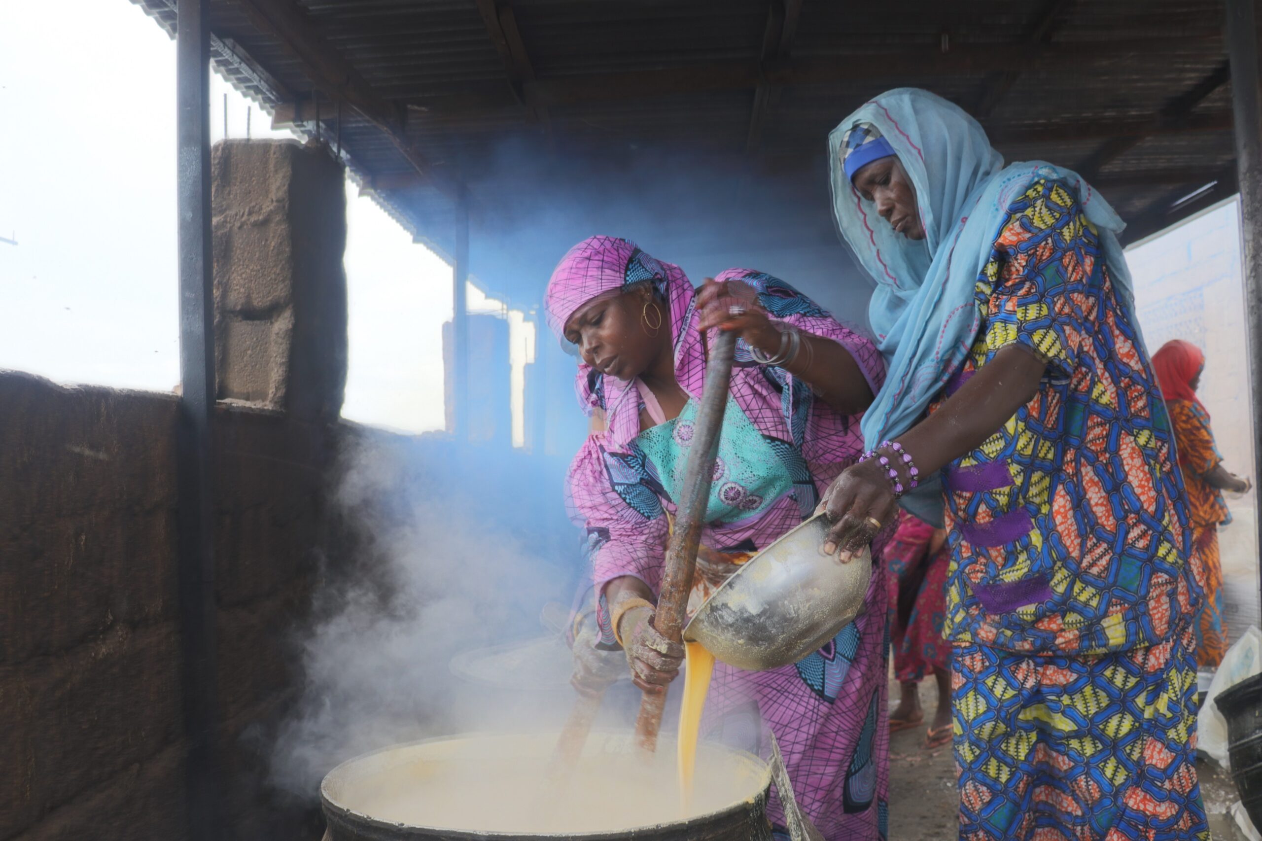 It was raining and a large crowd of mostly women and children huddled together outside a low-roof building in the town of Dikwa, Nigeria. The aroma emanating from the open-sided building seemed to have cast a spell on the crowd. Inside, Amina Abacha was busy issuing instructions to her helpers. Thick smoke clouded her simple kitchen where a team of volunteers labored over giant clay pots filled with sorghum porridge and stewed beans.