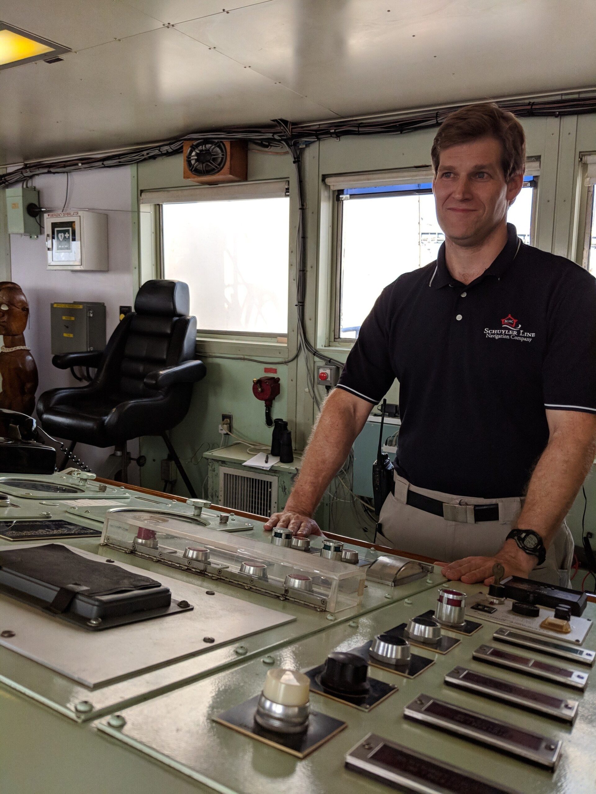 Walking up the stairs and onto the bridge of the ship, the captain greets us in front of an American flag hanging under the window that looks out to the deck below. He shares that he has traveled to numerous ports in the Middle East, but this will be his first trip to Yemen. In speaking about his crewmembers, he describes their work as an “unknown service,” one that most people don’t think about when they think about food aid.