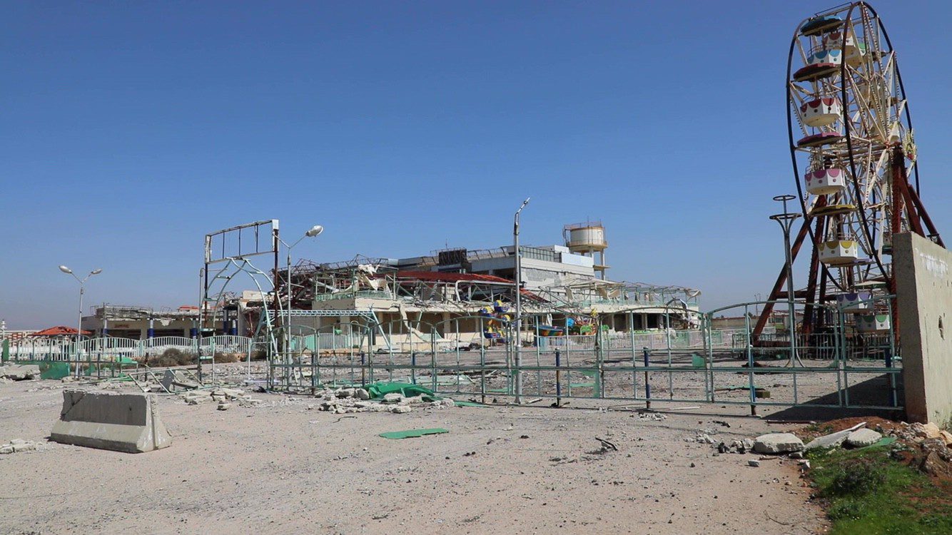 Near Daraa, less than an hour from Damascus, I come across an amusement park pockmarked with craters from mortar shells. Colorful mural-covered walls depicting cartoon characters have been aerated by bullets. The seats on a ferris wheel swing empty in the wind.