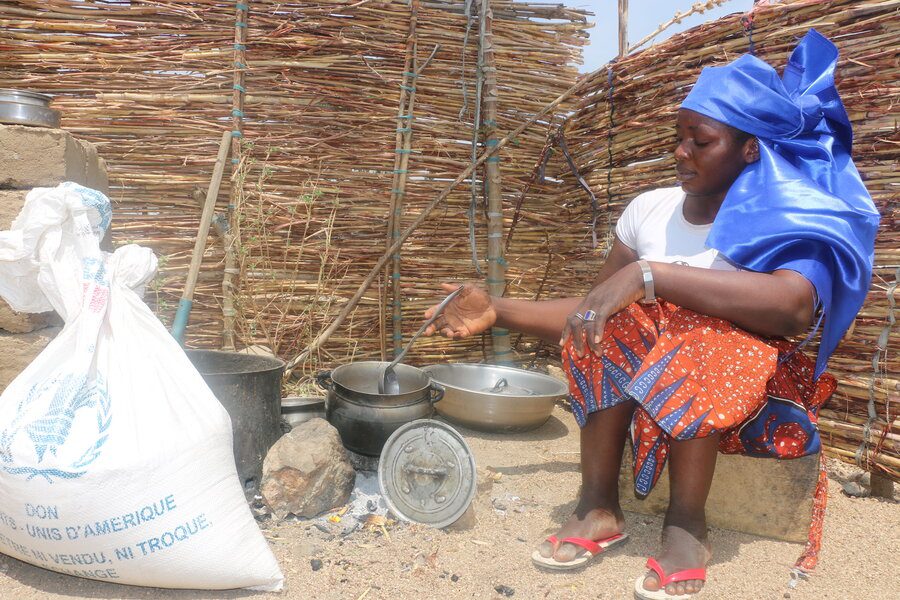 Every month, the U.N. World Food Programme provides food rations to the over 68,000 Nigerians living in the Minawao camp—one of the largest refugee shelters in Cameroon. When reaching food distribution sites becomes difficult, U.N. World Food Programme and refugee camp staff arrange for rations to be delivered in the comfort of their homes.