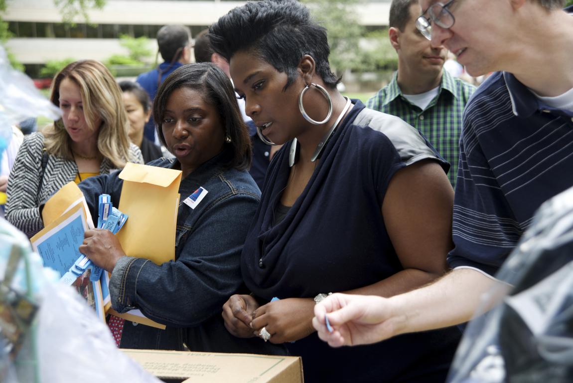 *IP employees, volunteers and supporters examine this year’s goodies (Photo courtesy of IP).