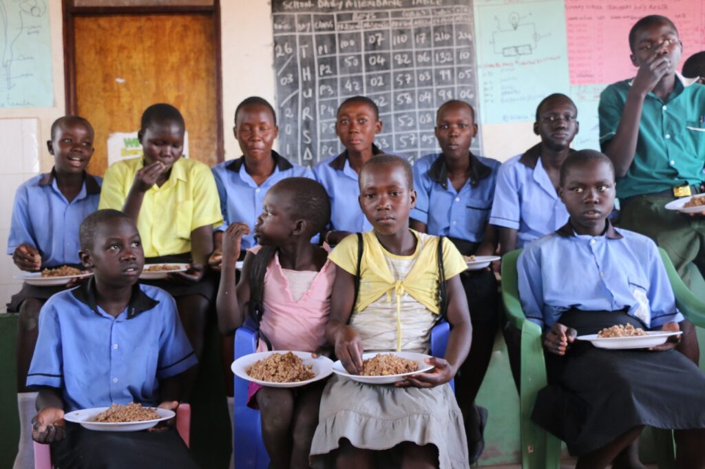 In Yei, a garrison town southwest of the country, close to South Sudan’s borders with Uganda and the Democratic Republic of Congo, fighting and insecurity disrupted farming resulting in a spike in food insecurity levels, grinding business to a halt and forcing essential services such as schools to close doors. Half the population fled into neighboring Uganda in search of refuge but for those who either remained or have returned home, a daily school meal has brought hope.