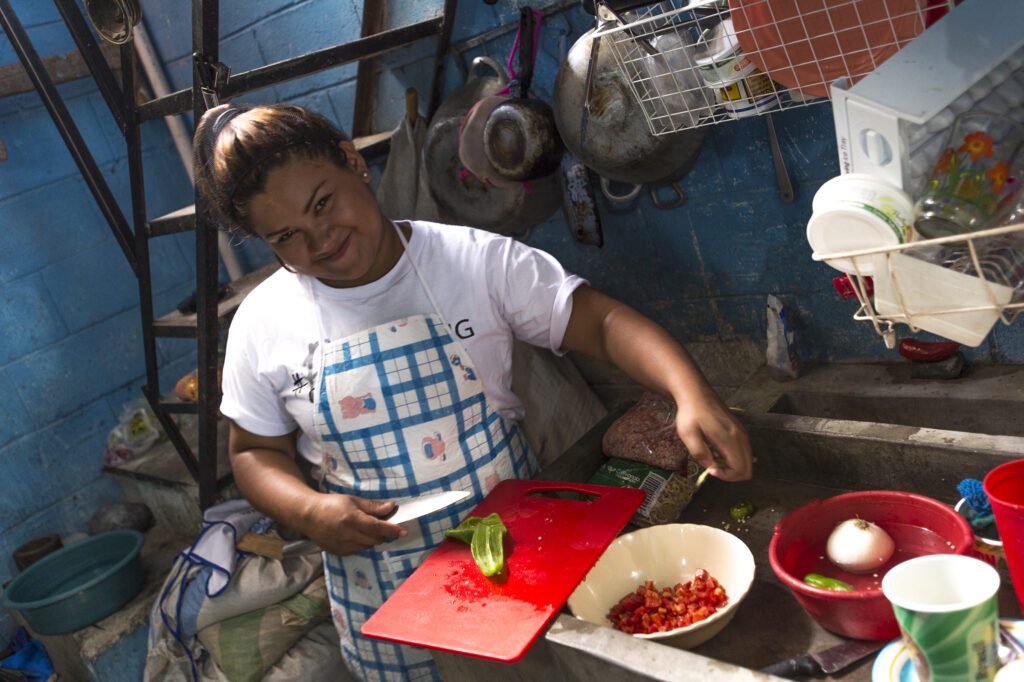 In El Salvador, Virginia Molina is lucky to have running water in her kitchen. She’s one of the few women from her community who finished high school, and her biggest dream is to become a psychologist. Right now though, she must work to help support her family, including making meals with ingredients she purchased using her U.N. World Food Programme food voucher.