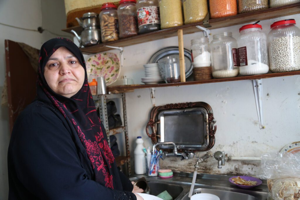Ibtisam is a Syrian refugee living in Lebanon. She’s a single mother of nine children caught in a vicious cycle of poverty and debt. Her eldest teenage daughter works 13 hours a day to help support the family. The only assistance Ibtisam gets is a debit card from the U.N. World Food Programme that she uses to buy food for the family, some of which is shown here on her kitchen shelves.