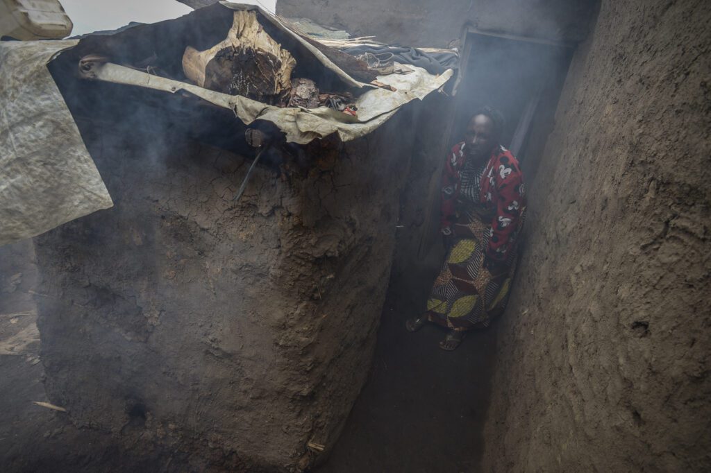 When militia men forced them from their home in the DRC, Venancie Muhimpundo and her three children spent three weeks hiding from them in the brush. Her husband was killed trying to defend their farm, and a truck driver brought them safely to Rwanda. Here, at a refugee camp, Venancie is about to enter her kitchen – a small, windowless, smoke-filled room that is common throughout the region. She relies on the U.N. World Food Programme to provide the food she and her children need.