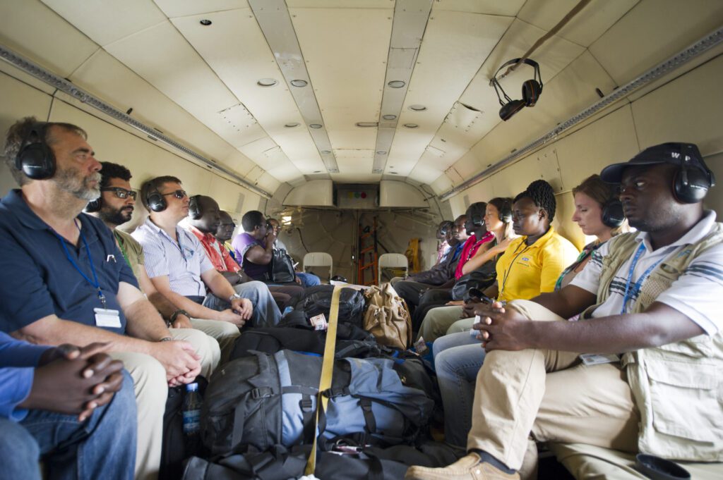 Meanwhile, an annual rainy season brings torrential rains that flood 60 percent of the country’s few existing roads, turning large swaths of the landscape into impenetrable marshland. Tens of thousands of families have sought refuge in these isolated swamps, relying on water lily bulbs to survive. Reaching people hiding in these remote regions poses serious challenges and risks for humanitarian workers. River canoes can’t transport adequate amounts of food aid. Large trucks often get trapped in the mud. Both are vulnerable to attack.