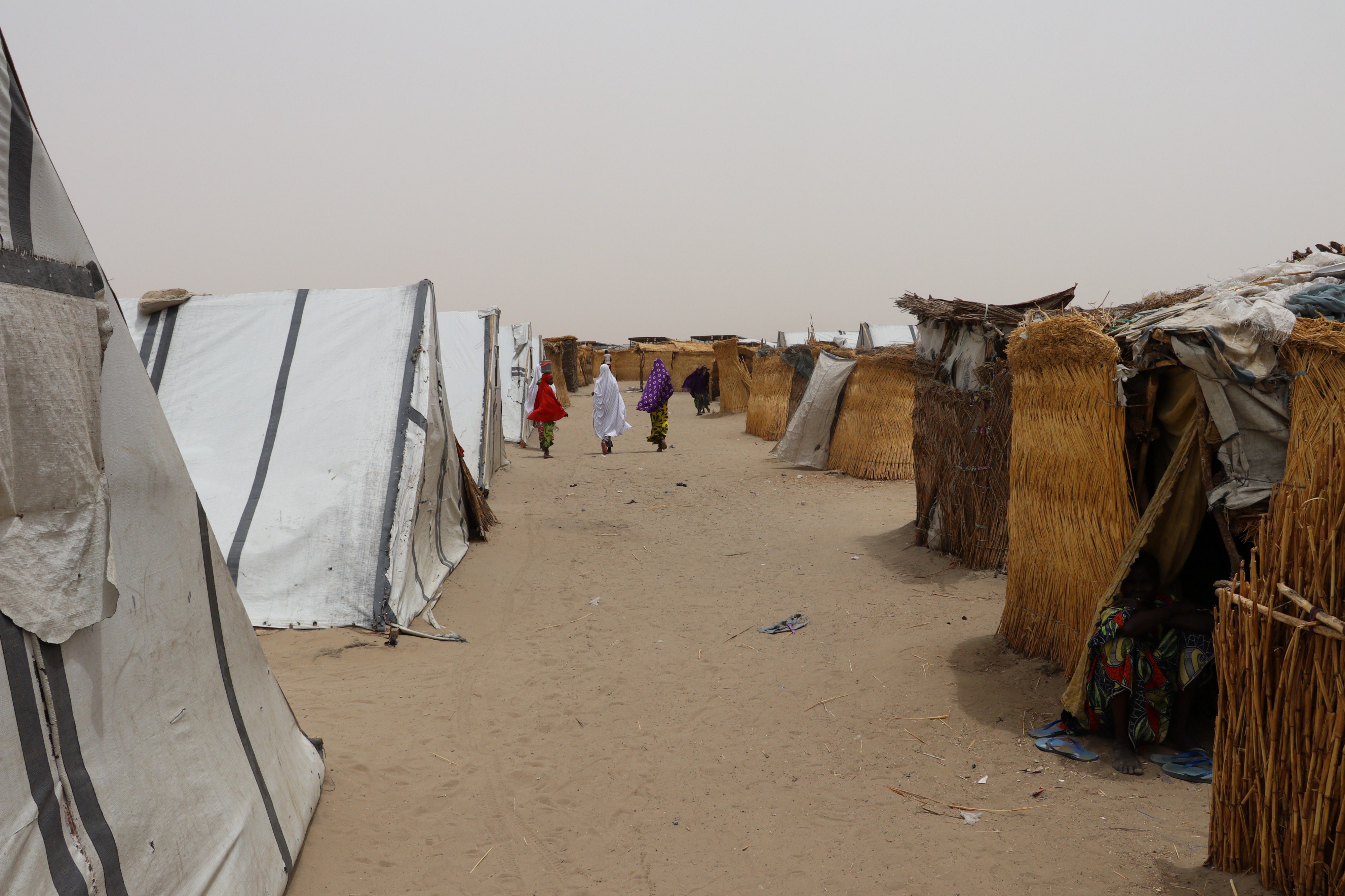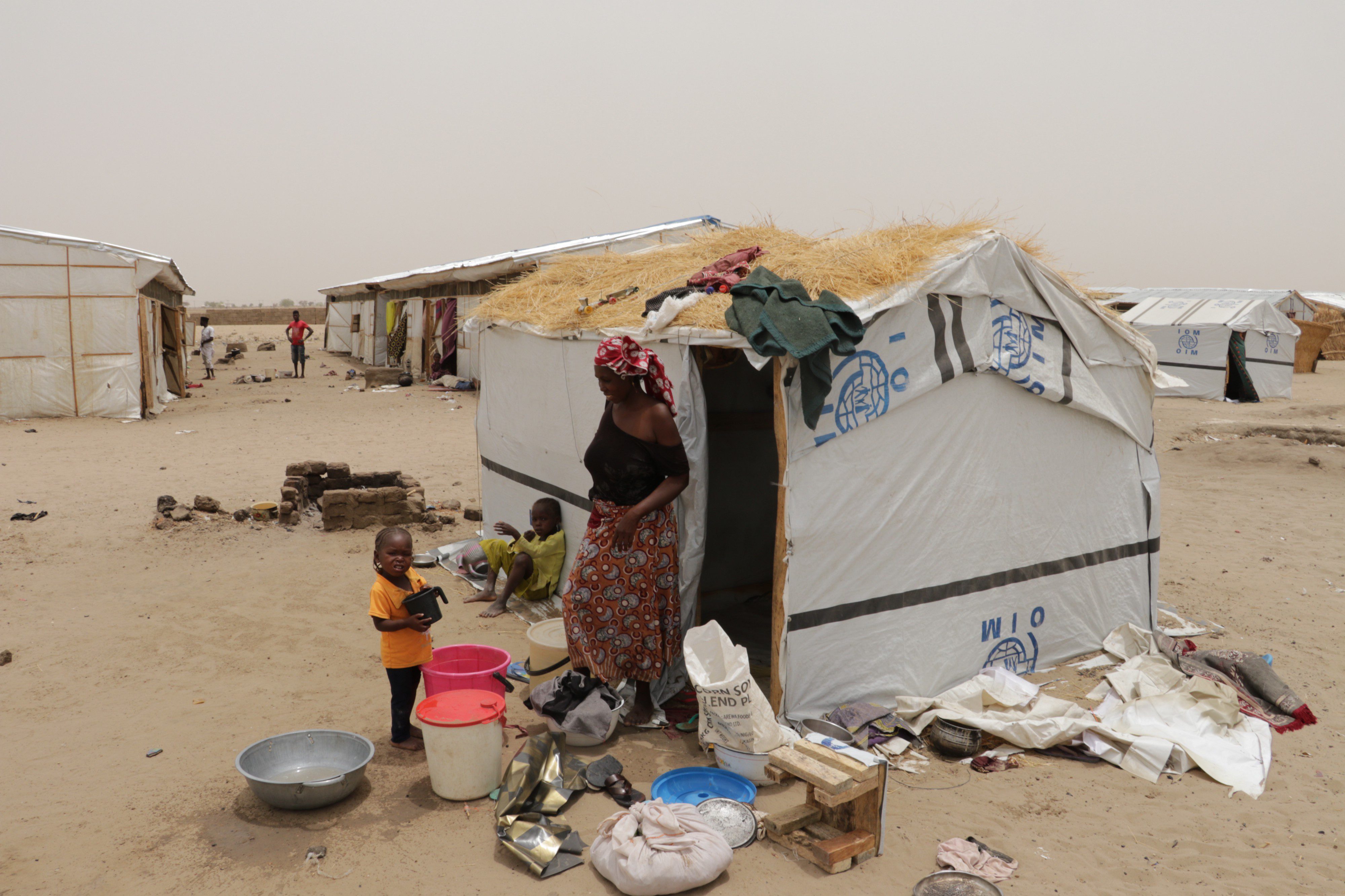 For three weeks, home for Zarah Modu has been a cavernous tent that serves as a reception center for internally displaced people (IDPs) arriving in the town of Monguno. There is no privacy here. Men, women and children sleep together in the same space, something totally alien to the culture of this region. Zarah’s two sons, four and three, lie sprawled across her, fast asleep in the stifling heat. They are among the latest victims of the long-running conflict in Nigeria’s northeast, which has driven close to 2 million people from their homes over the past decade.