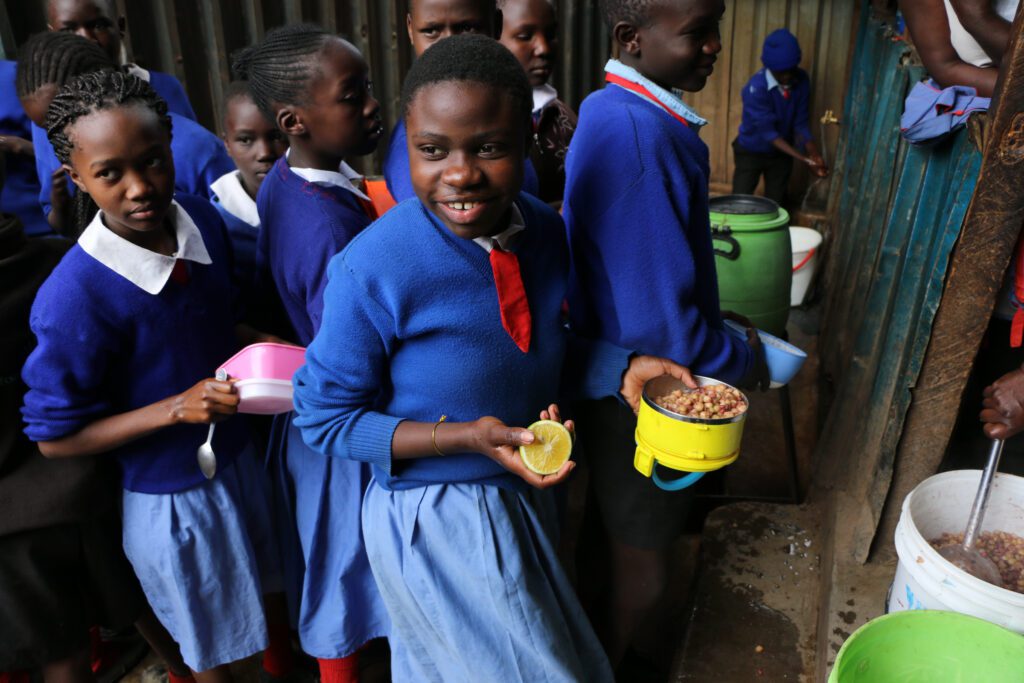 Evelyn is a firm believer in the power of school lunches to keep kids in school. “Without school lunches, these children would end up on the streets. The green vegetables are a welcome addition — the food is more nutritious.”