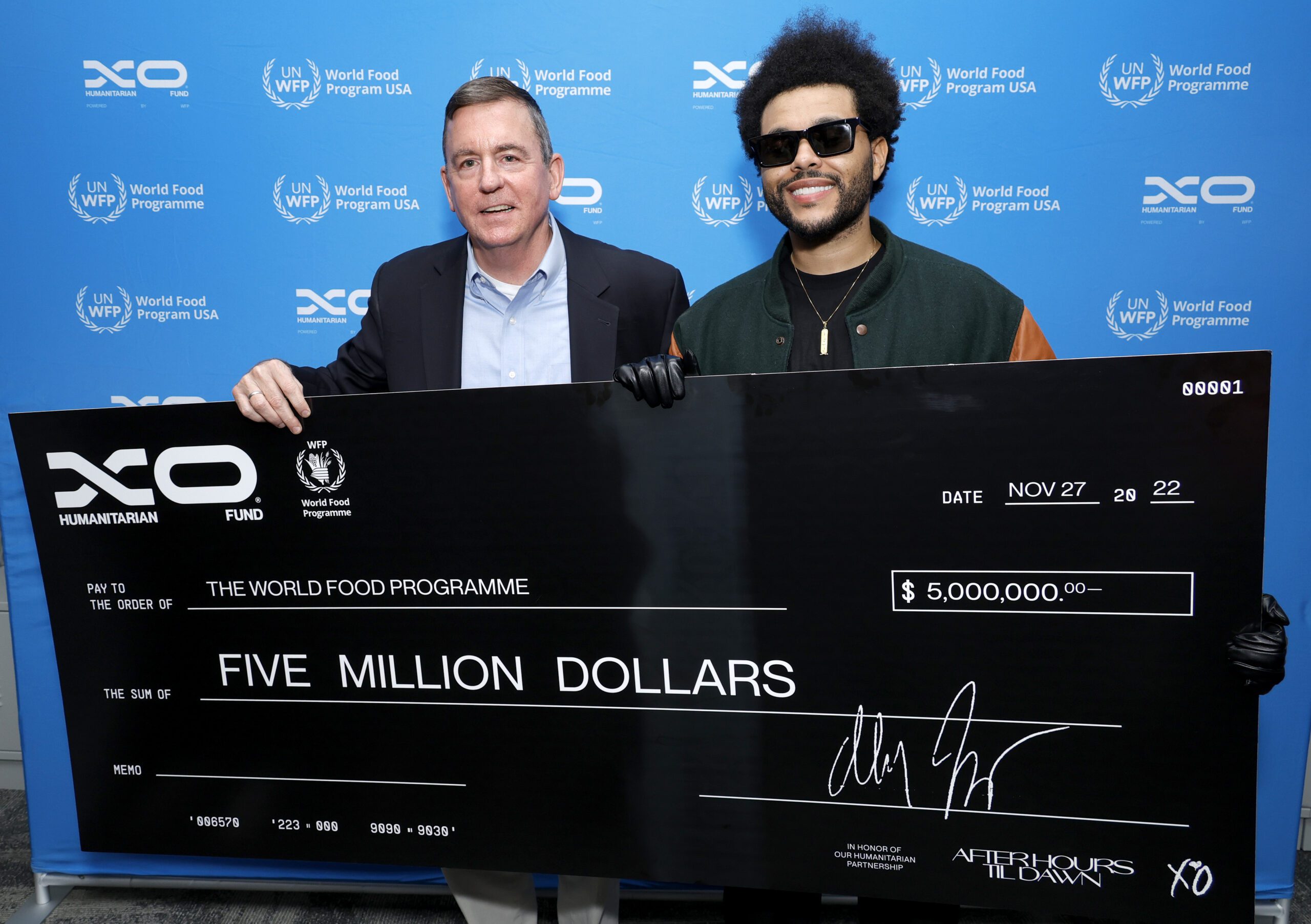 Los Angeles (November 28, 2022) — The United Nations World Food Programme (WFP) and the multi-platinum certified global star Abel “The Weeknd” Tesfaye, a U.N. World Food Programme Goodwill Ambassador, today announced that since launching their XO Humanitarian Fund in March 2022, $5 million has been raised and pledged to provide food and support to millions of people experiencing hunger across the globe. The Weeknd presented a check to World Food Program USA during a private event at his After Hours Til Dawn Stadium Tour concert in Los Angeles.