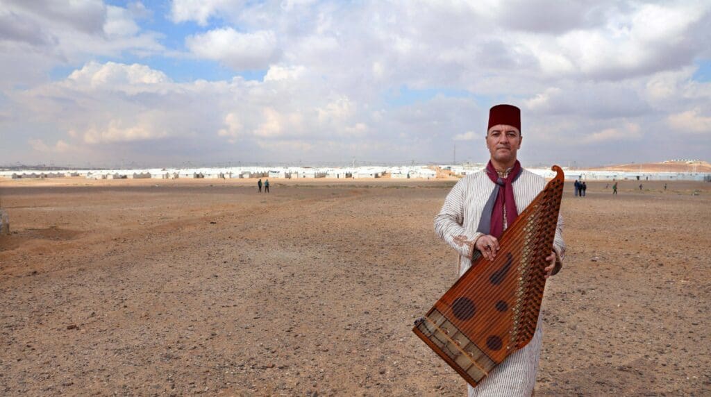 But when the war in Syria broke out, the music stopped. To make matters worse, after finding in refuge in Jordan, Mustafa’s family received devastating news: his teenage daughter Sara was diagnosed with cancer. He sold his prized qanun, a string instrument similar to a harp, to help pay for her lifesaving surgery.