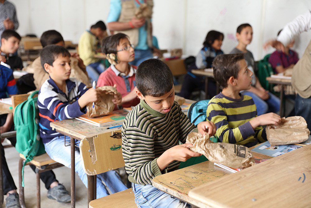 In Lebanon, WFP joined forces with the government to address the lack of educational opportunities for both Lebanese and Syrian elementary school children. By distributing locally-sourced ready-to-eat snacks, WFP staff is addressing short-term hunger while providing an incentive for parents to enroll their children in school and encourage their attendance.