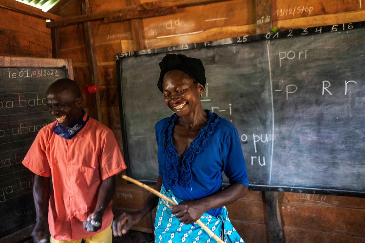 Adults need teachers too! This enthusiastic U.N. World Food Programme tutor (in orange) helped Furaha, a shop-owner in Kahseke, DRC, learn how to read. With her new skills, she was able to serve as president of her village savings group and better manage the profits from her small business.