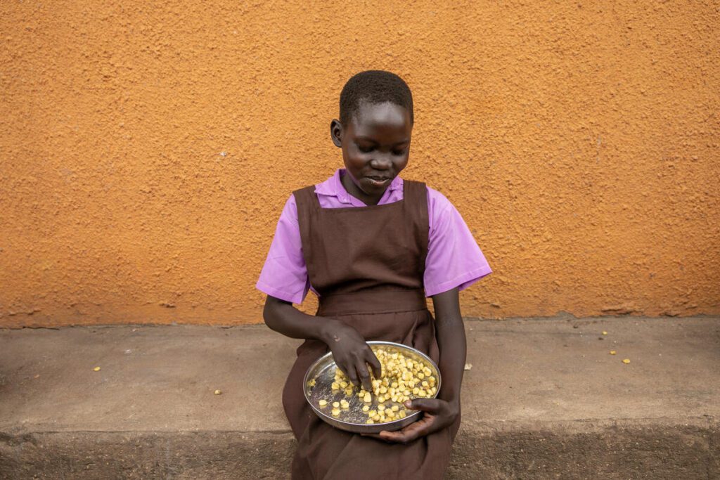 Improve children’s focus: In South Sudan, 13-year-old Joyce wants to be a pilot when she grows up. “I like going to school because I like to learn and be with my friends,” she says. “I like the food here because it helps me learn better.”